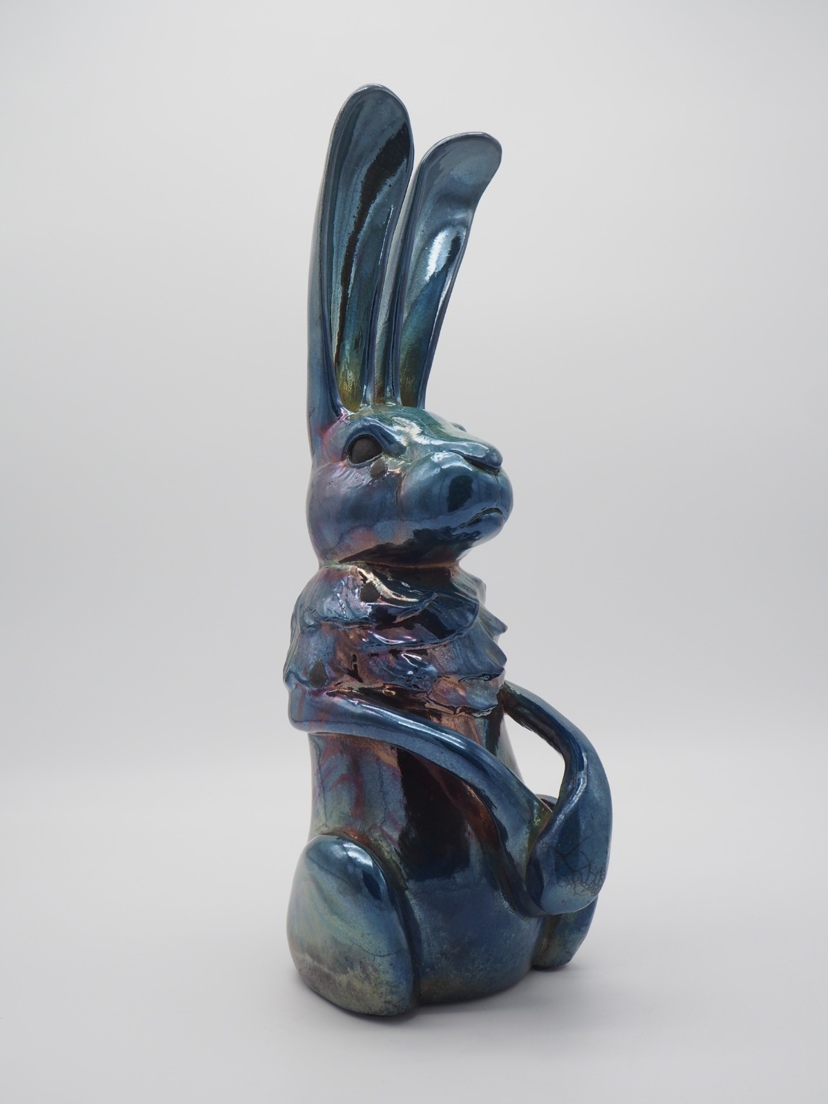 Alchimiste du feu, de l'eau et de l'air, Ginie a fait du raku sa signature. Dans son bestiaire poétique, chaque créature, à la fois tendre et énigmatique, naît de la métamorphose de la matière et se pare de peaux craquelées et de reflets métalliques… Autant de marques du dialogue entre le geste et les éléments.