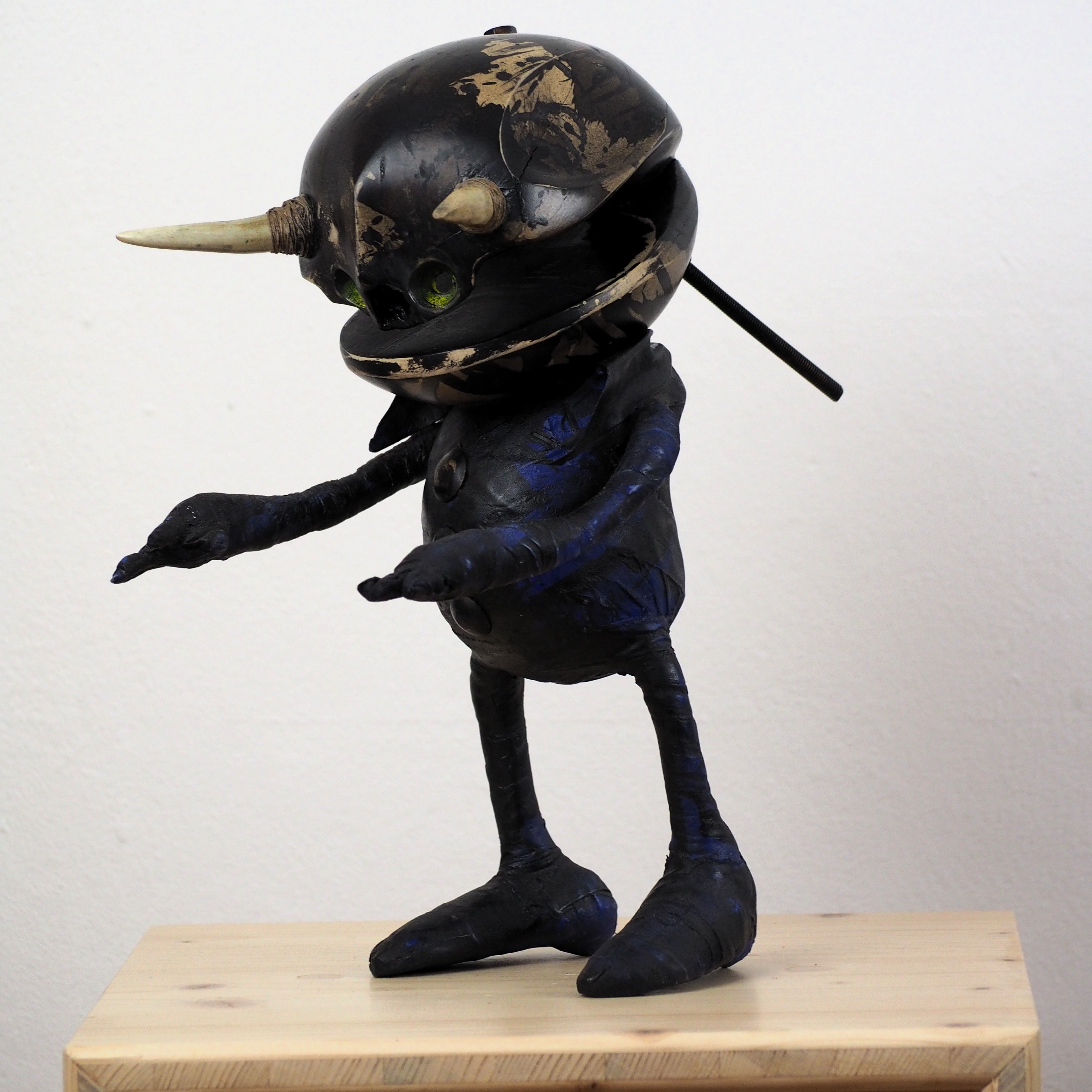 Ses créations, entièrement constituées de matériaux bruts, semblent surgir d’un rituel ancien, comme chargées d’une magie primitive. Assemblées, agrafées, martelées, cloutées, brûlées, ces matières se transforment en créatures animo-humanoïdes, à mi-chemin entre totems et esprits. Ainsi, sa quête artistique fait la part belle à l'ensemble du vivant : la Terre lui offre ses dons les plus purs, il les façonne sans artifice.